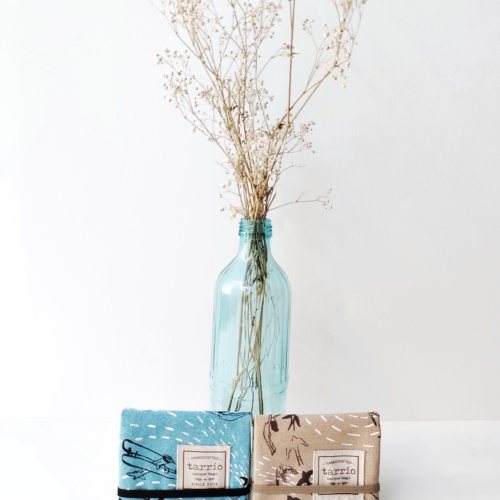 Telas: Tapicerías suaves y lonas de algodón son las protagonistas de esta colección, en la que utilizamos restos de fábrica para estampar sobre ella estampados viajeros hechos con serigrafía artesanal.
